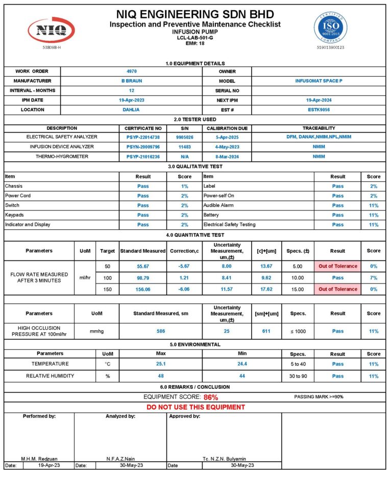 In conclusion, The application of uncertainty measurement techniques in calibrating medical equipment plays a crucial role in achieving accurate and reliable measurements. By quantifying measurement uncertainties, healthcare professionals can ensure precise diagnosis and treatment, comply with regulatory standards, mitigate risks, and drive advancements in research and development. Embracing uncertainty measurement as an integral part of the calibration process is essential for enhancing quality, safety, and efficiency in healthcare, ultimately benefiting both patients and the biomedical engineering community.